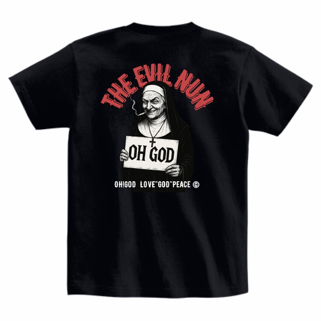厳格で清楚なイメージのシスターをパロったデザインが謎めいた魅力を放つTHE EVIL NUNシリーズ 着る人の個性を表現できるおすすめアイテム ユニセックスデザインなので、誰でも気軽に着こなすことができるのが魅力 日常のファッションにはもちろん、カジュアルスタイルにもぴったりです どんなシーンでもあなたの存在感を際立たせる一枚です